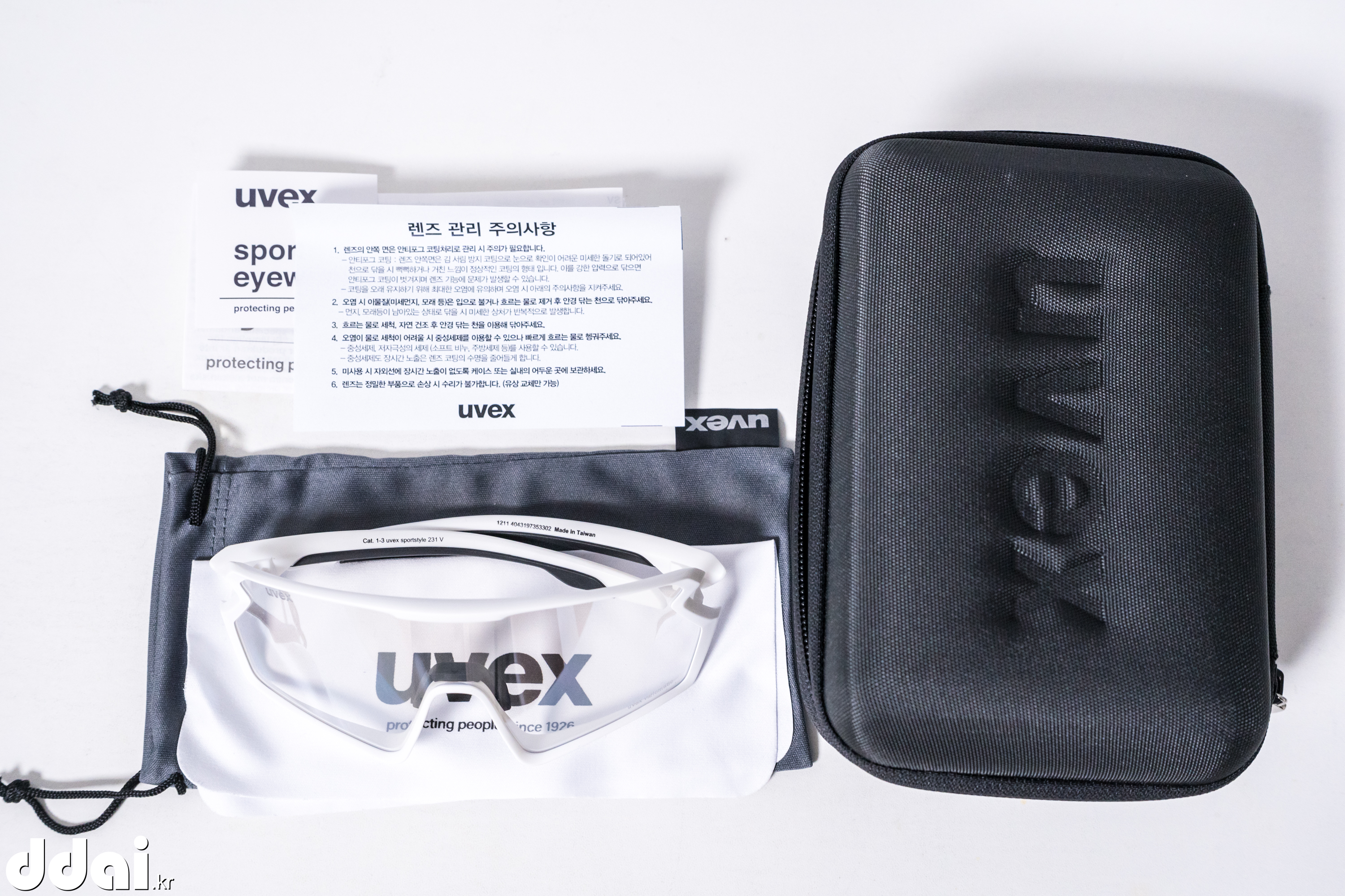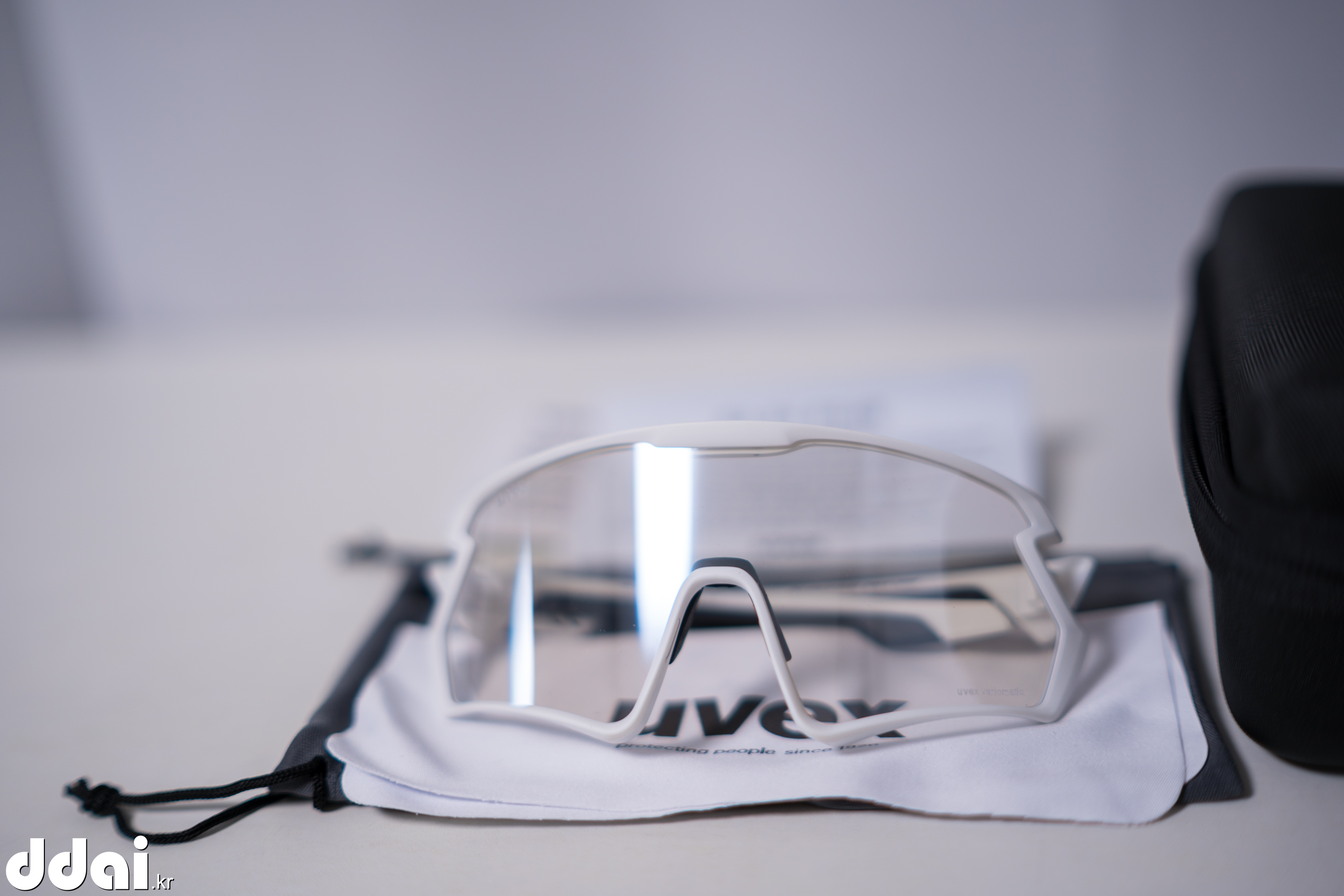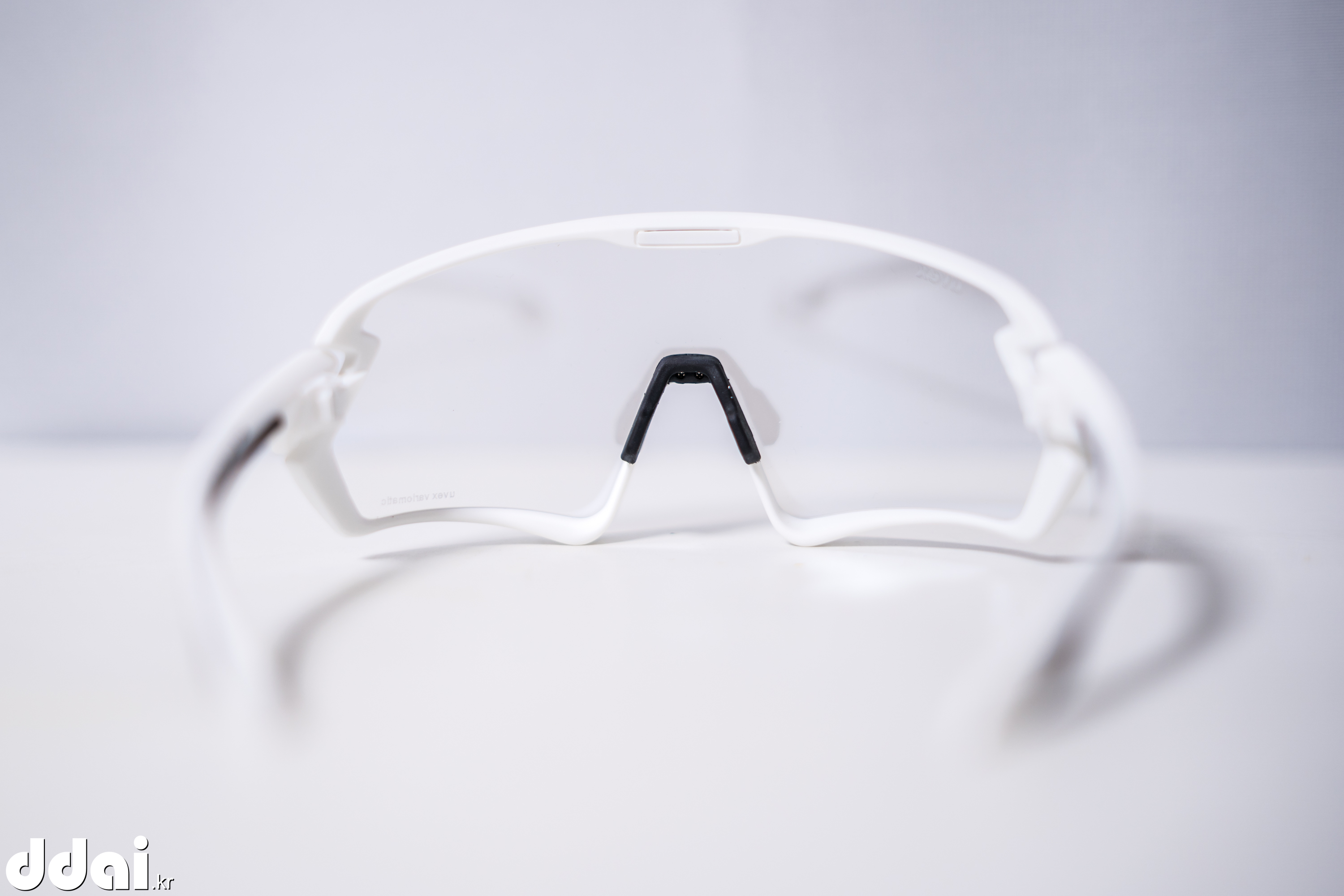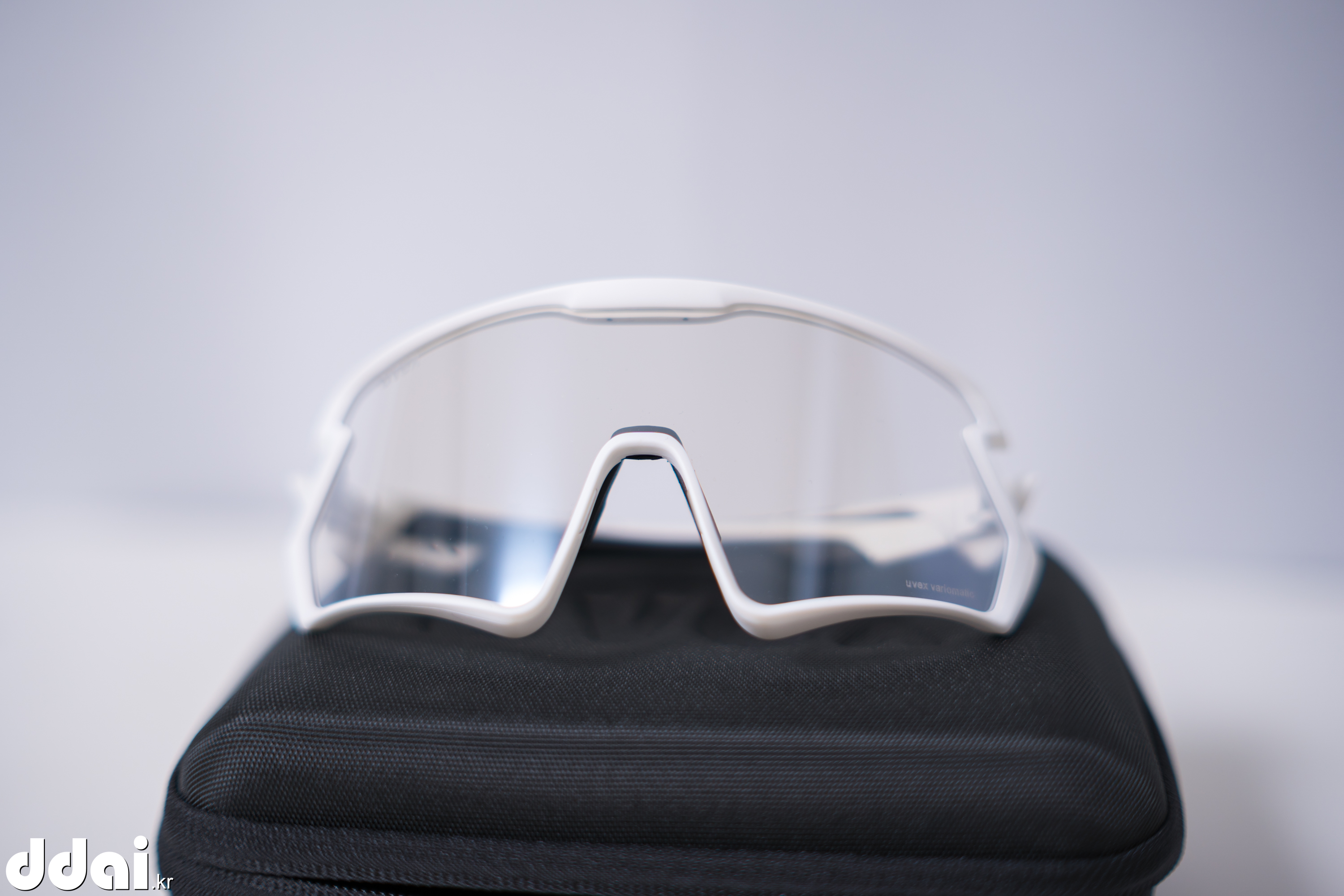 고글이 이뻐서 없는 블랙을 살까 하다가 평소 사던대로 흰색테에 미러렌즈가 아닌 변색렌즈로 구입