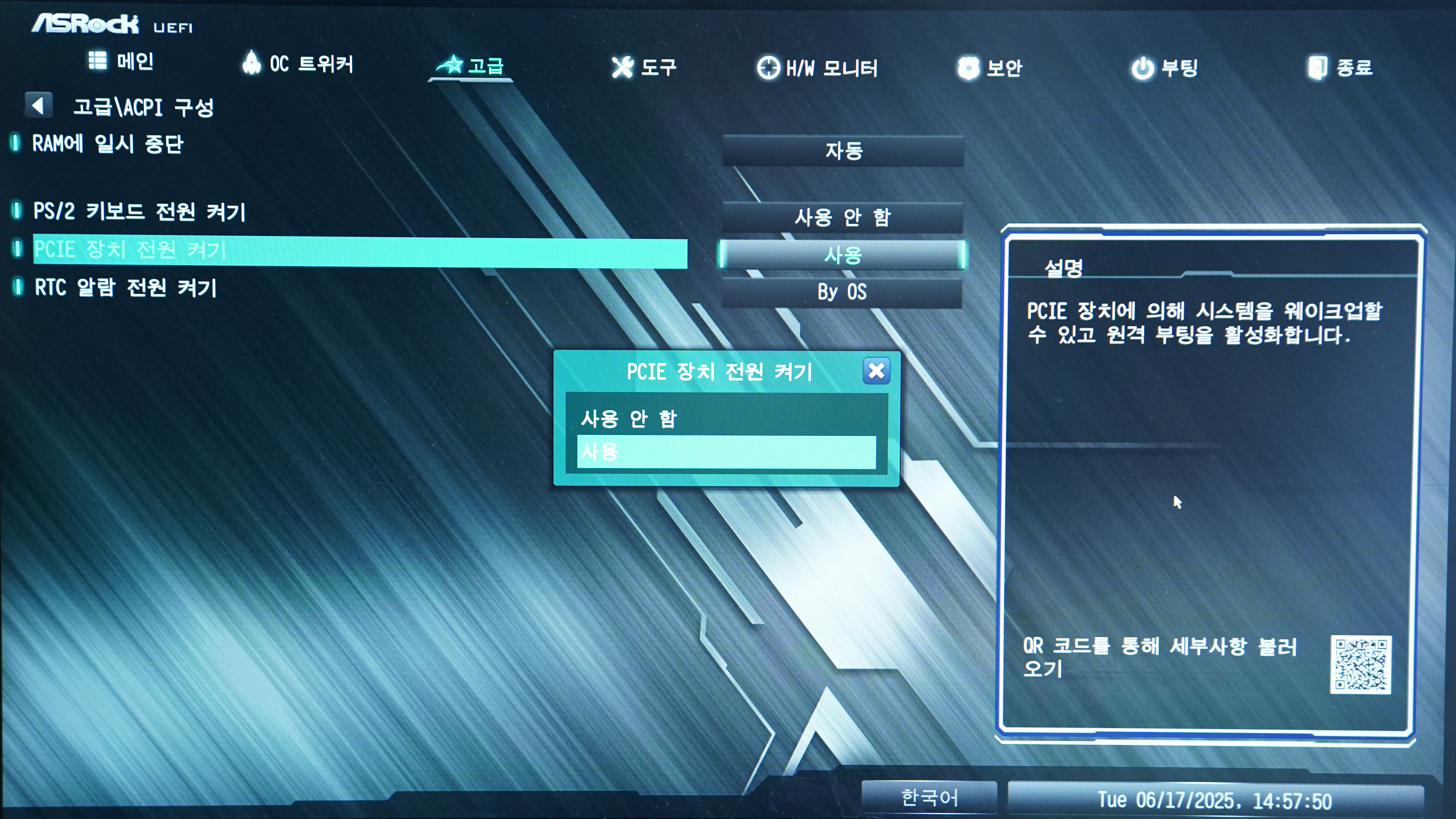 PCIE 장치 전원 켜기 - 사용