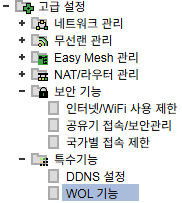 고급설정 - 특수기능 - WOL 기능