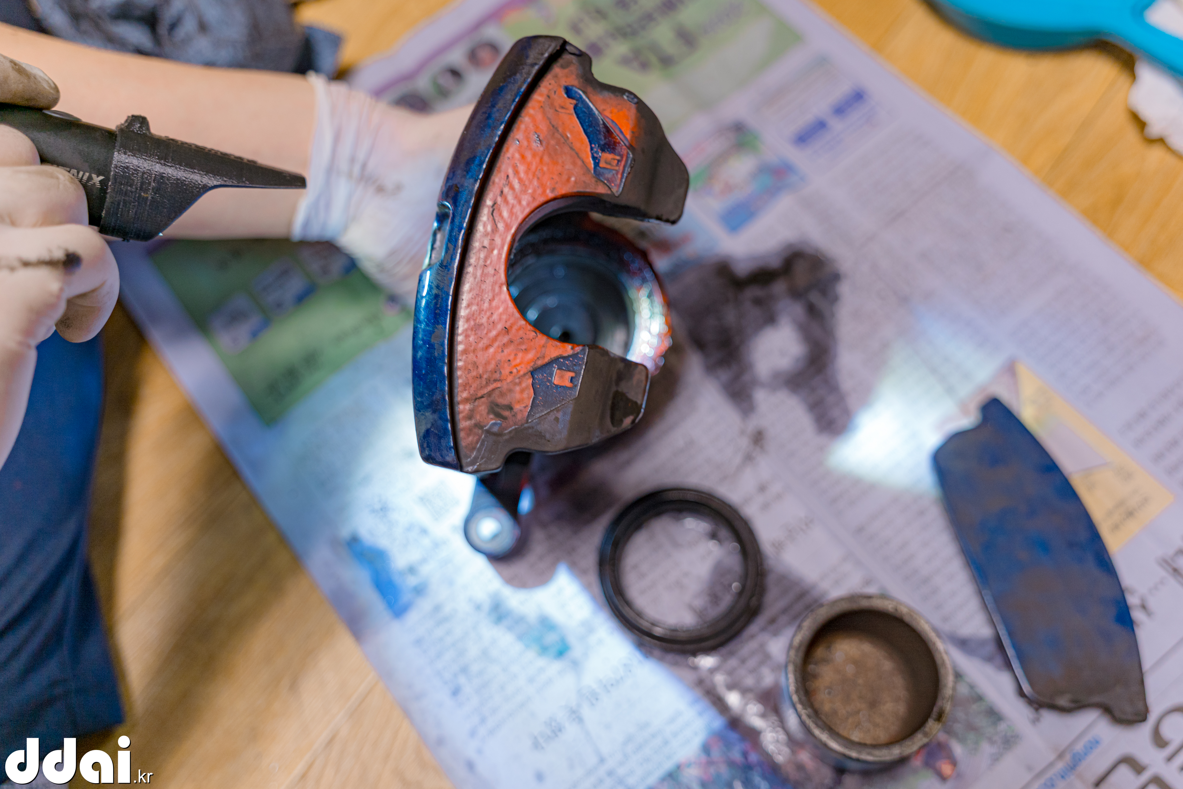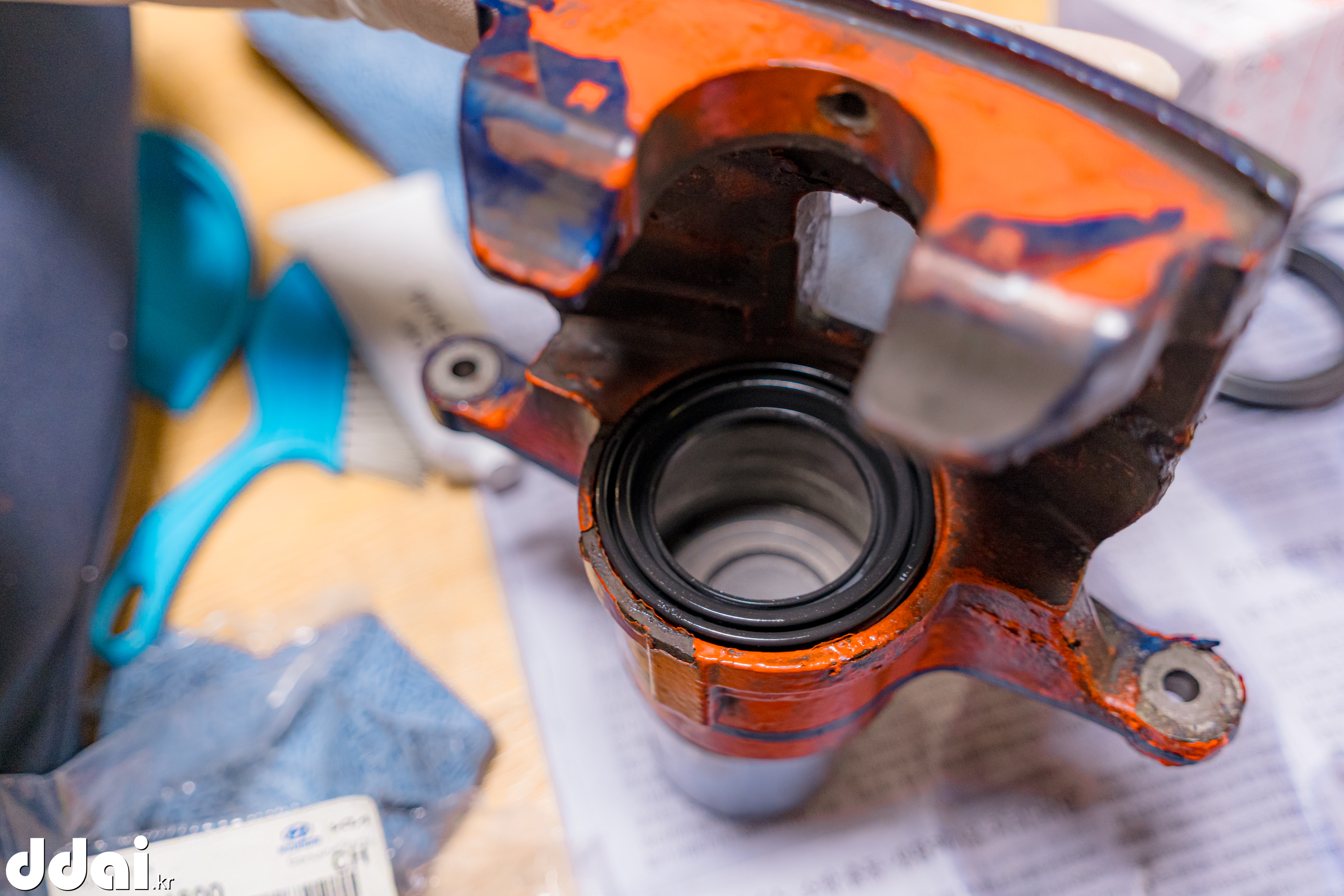 깨끗하게 씻겨진 캘리퍼에 씰을 삽입하고
