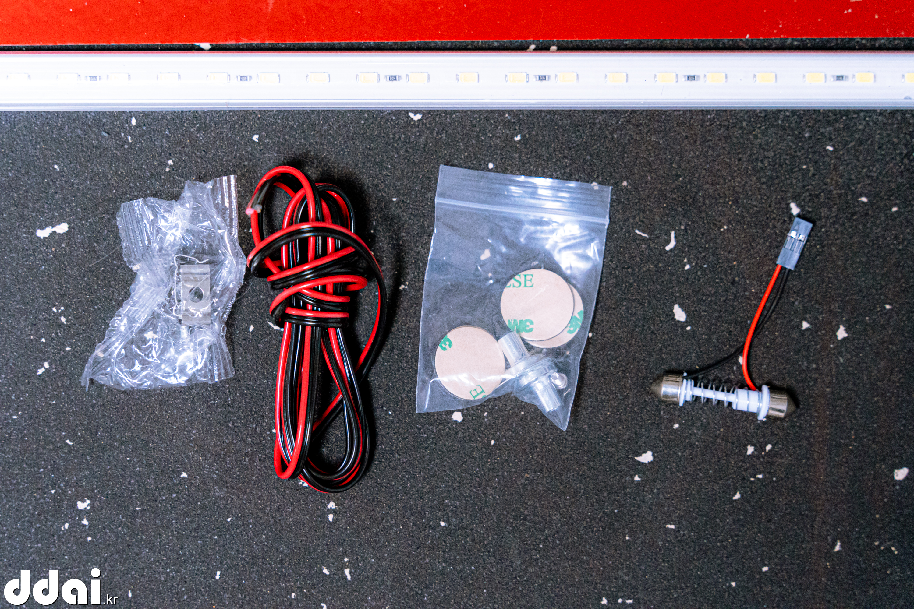 LED바 고정을 위한 부품과 전선, 소켓부품