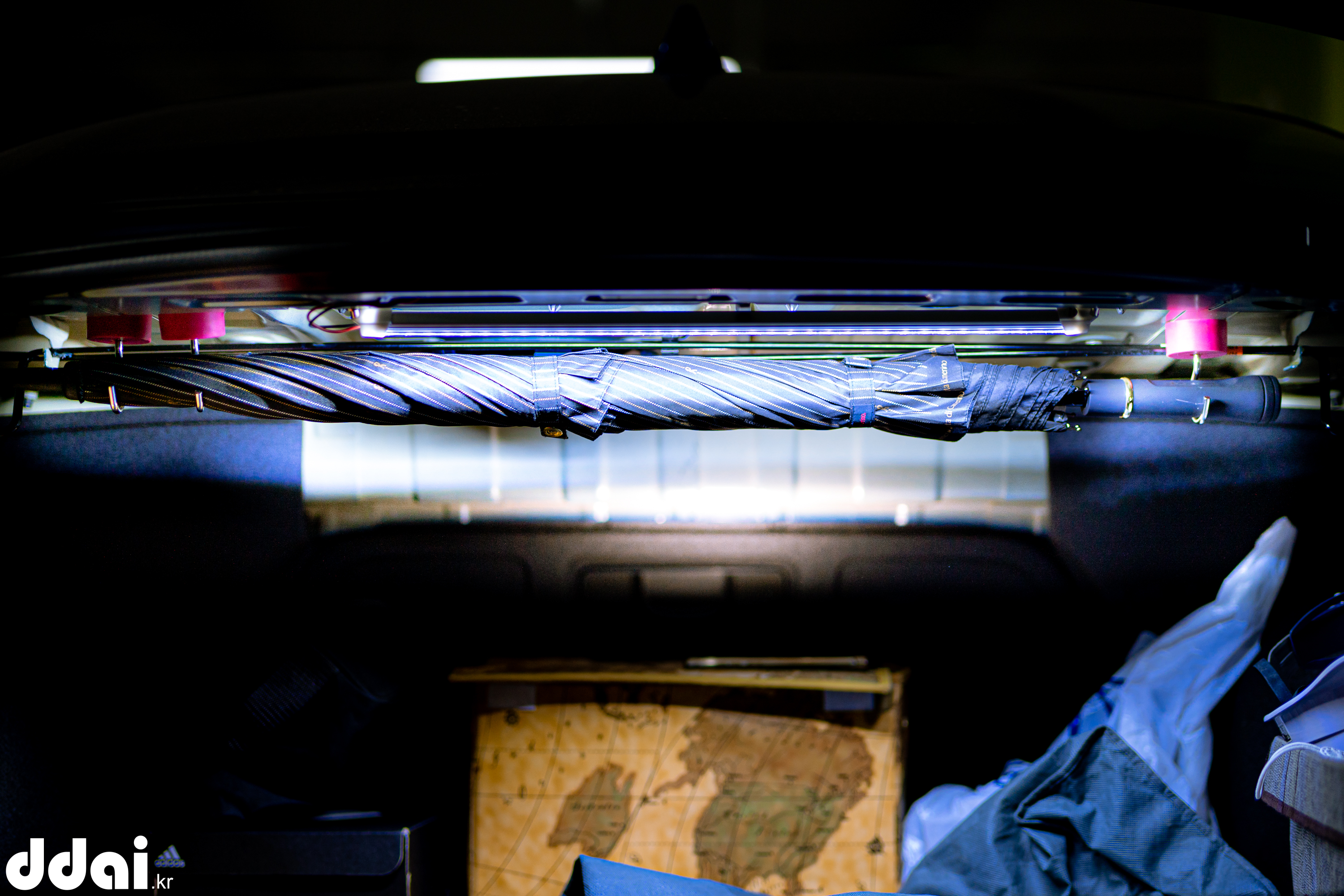 장우산이 트렁크 가동부분과 거의 맞닿으려해서 2개로 안움직이게 고정했다.